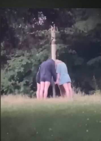 커플은 그 이상한 것에 점점 다가가는데 거기에서 한 무리의 사람들이 고개를 숙이고
