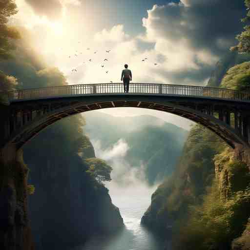 다리에 서 있는 사람 꿈속의 다리는 변화와 전환의 상징입니다.