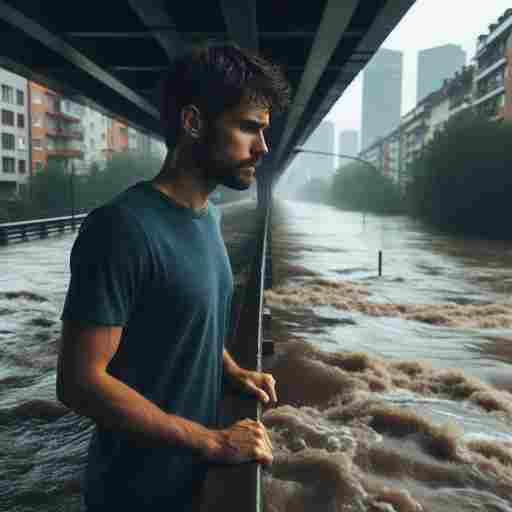 다리에 서서 홍수를 지켜보는 남성 다리에서 홍수를 지켜보는 꿈은 주위의 다른 사람이 안고 있는 트러블이나 고민을 알면서도